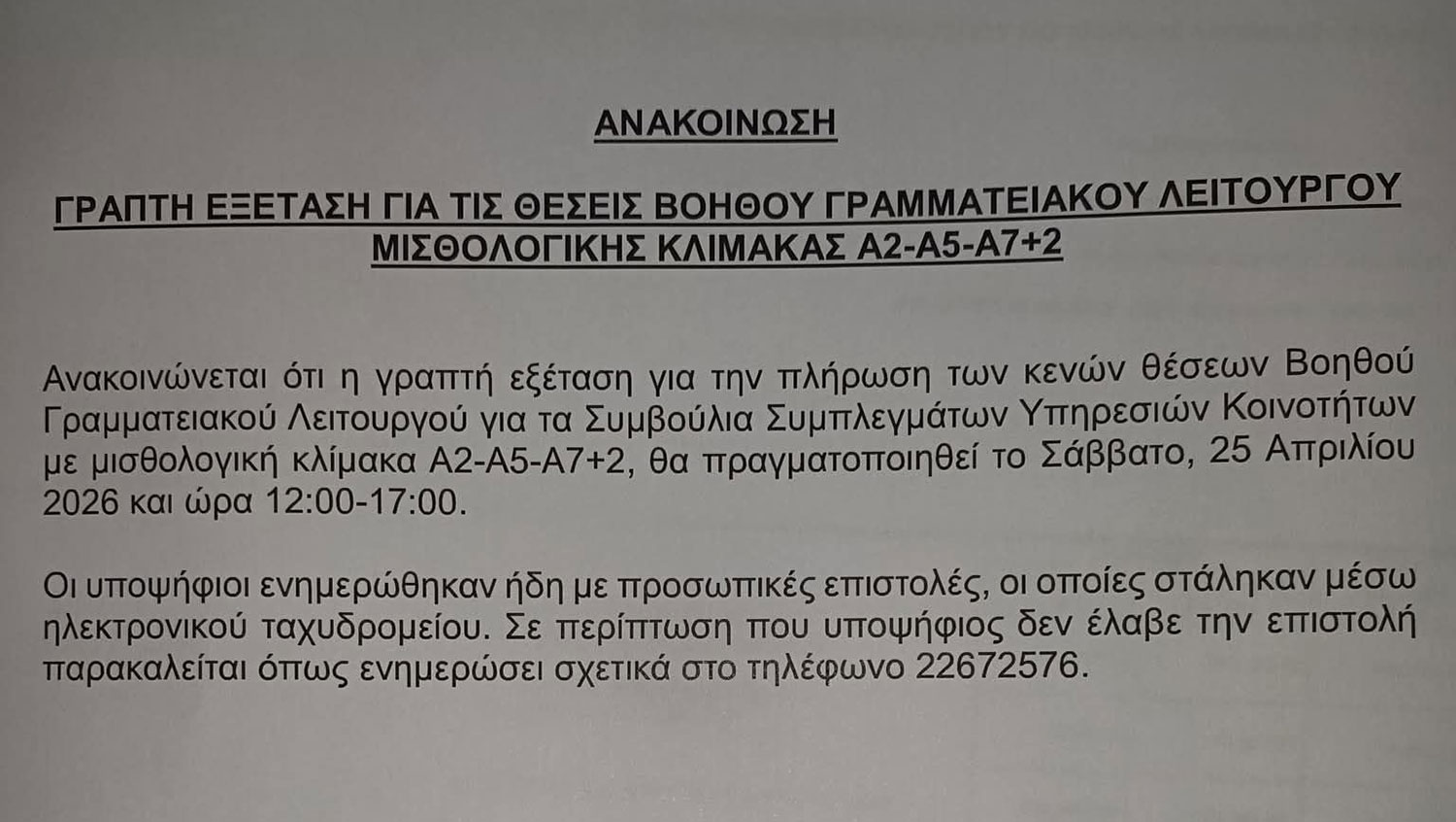 Ανακοίνωση – ΓΡΑΠΤΗ ΕΞΕΤΑΣΗ ΓΙΑ ΤΙΣ ΘΕΣΕΙΣ ΒΟΗΘΟΥ ΓΡΑΜΜΑΤΕΙΑΚΟΥ ΛΕΙΤΟΥΡΓΟΥ20/03/2026/στην κατηγορία Ανακοινώσεις/Εκδηλώσεις https://mari.org.cy/wp-content/uploads/655457654_1364800312350860_2428321008837272448_n.jpg 846 1500 netinfo https://mari.org.cy/wp-content/uploads/logoGR-1.png netinfo2026-03-20 15:31:292026-03-26 15:31:53Ανακοίνωση – ΓΡΑΠΤΗ ΕΞΕΤΑΣΗ ΓΙΑ ΤΙΣ ΘΕΣΕΙΣ ΒΟΗΘΟΥ ΓΡΑΜΜΑΤΕΙΑΚΟΥ ΛΕΙΤΟΥΡΓΟΥ